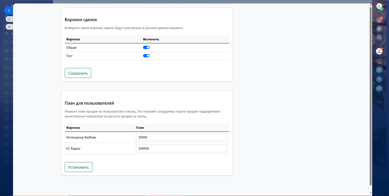Наше приложение добавляет в Вайб Битрикс24 мощные интерактивные виджеты, которые превращают сухие цифры в удобный инструмент для управления продажами и мотивации команды. Теперь ключевые показатели бизнеса всегда под рукой - в одном интерфейсе, без лишних кликов и поисков.
