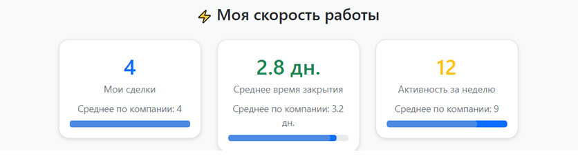 - Скорость обработки - менеджер увидит свои сильные и слабые стороны в обработке сделок.
