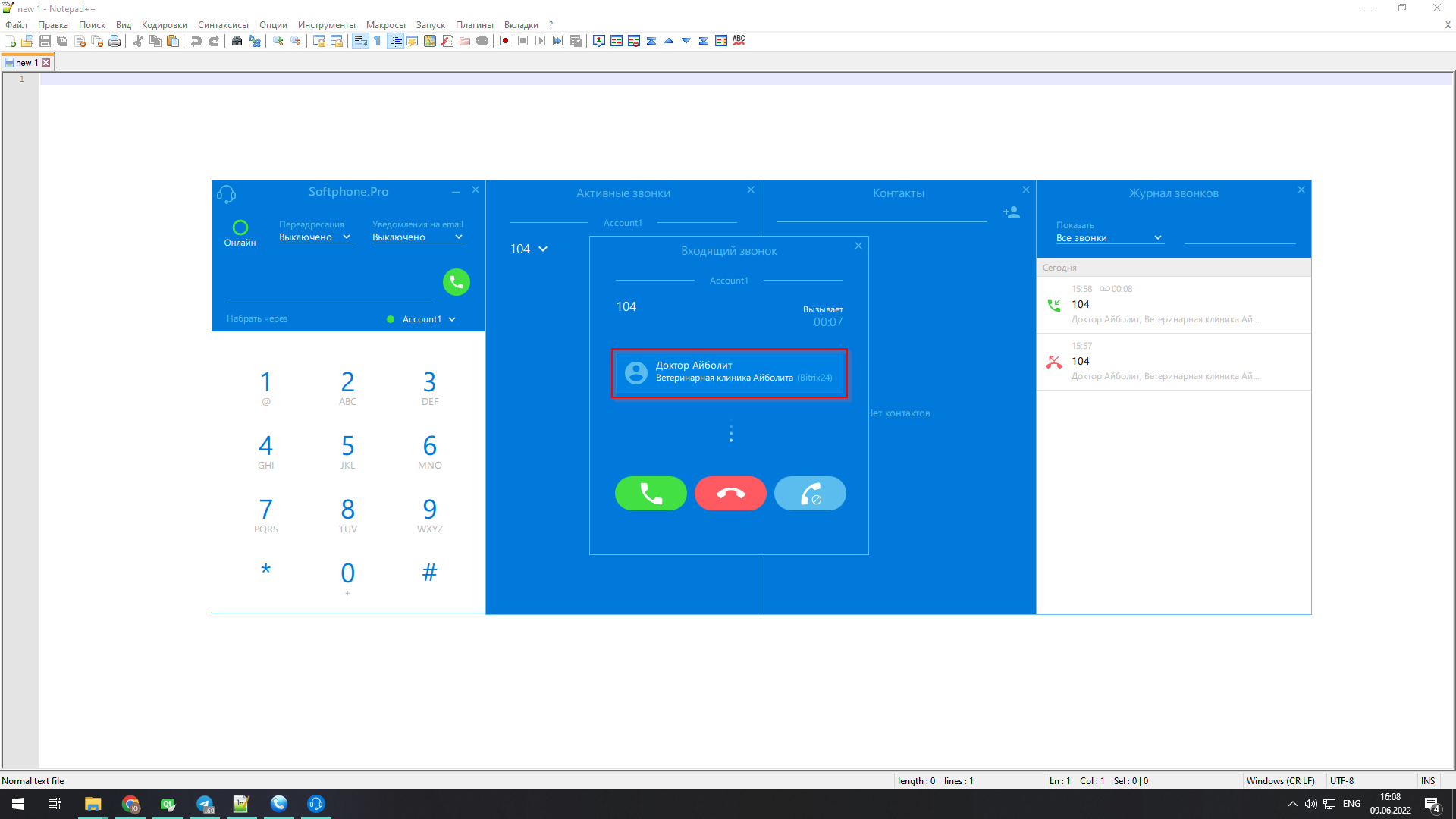 - вы будете видеть в момент звонка имя и компанию клиента в интерфейсе Softphone.Pro