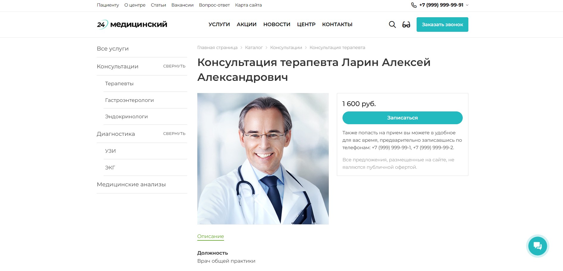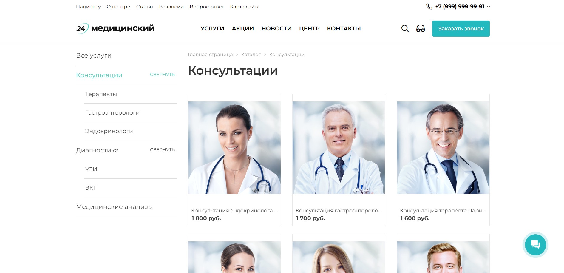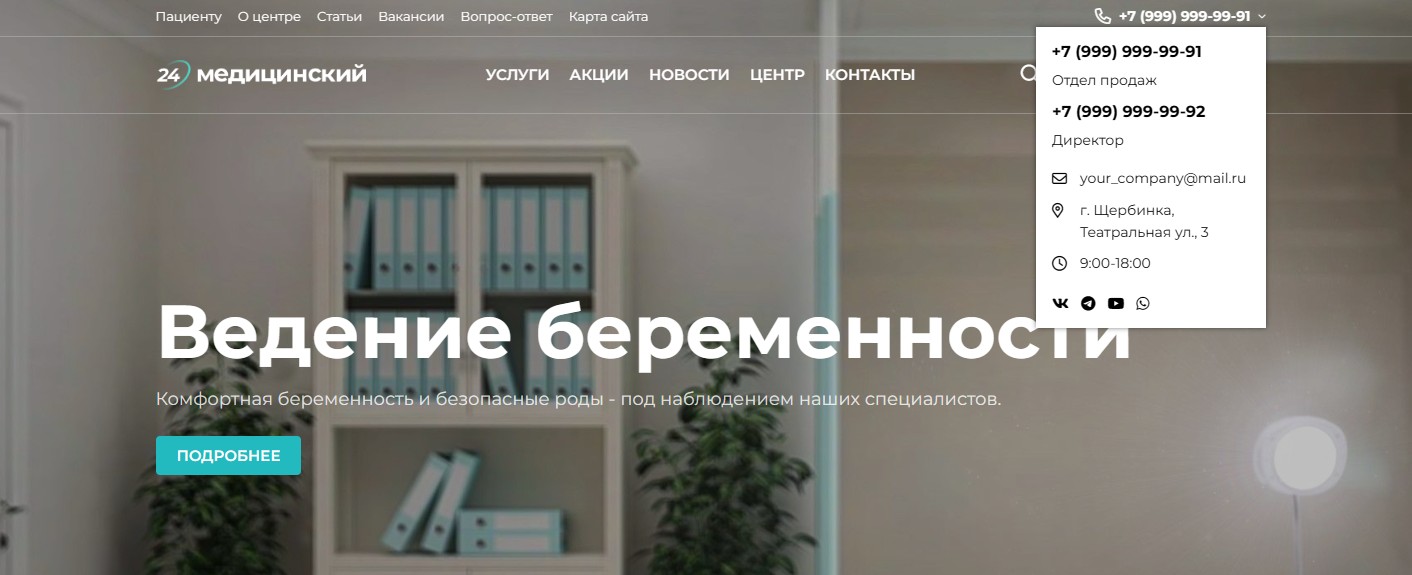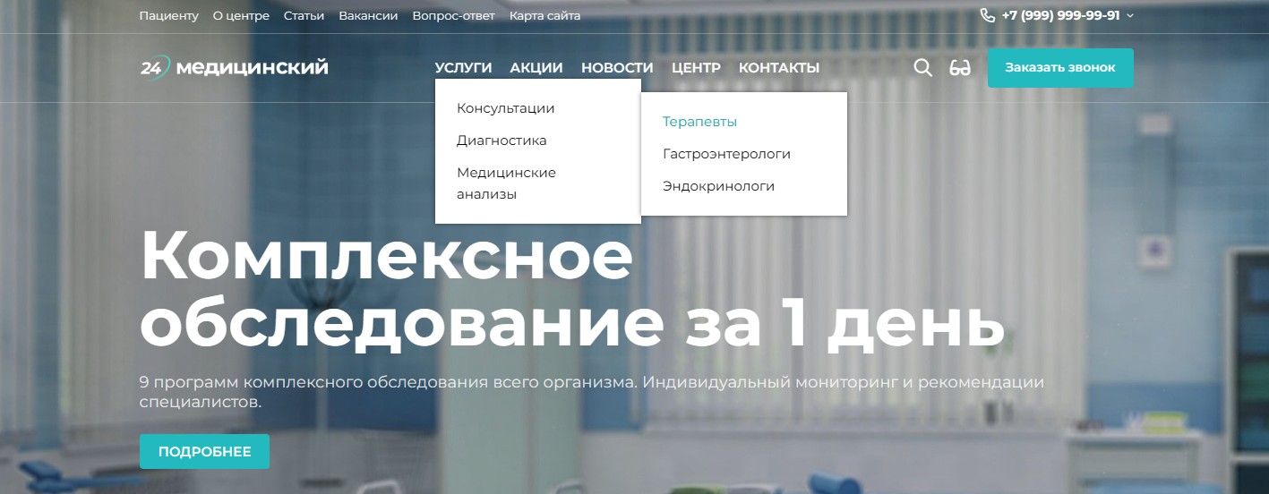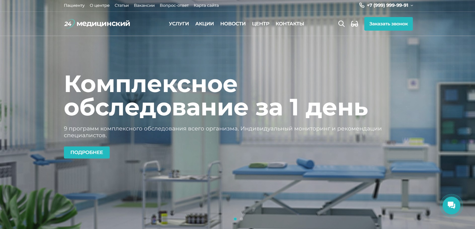 Медицинский сайт Б24, подойдет клиникам с услугами по одному или нескольким направлениям. Многопрофильным медицинским центрам. Врачам частной практики и врачебным кабинетам.
