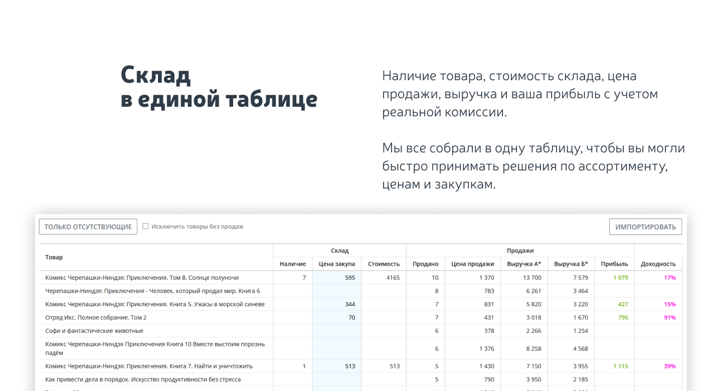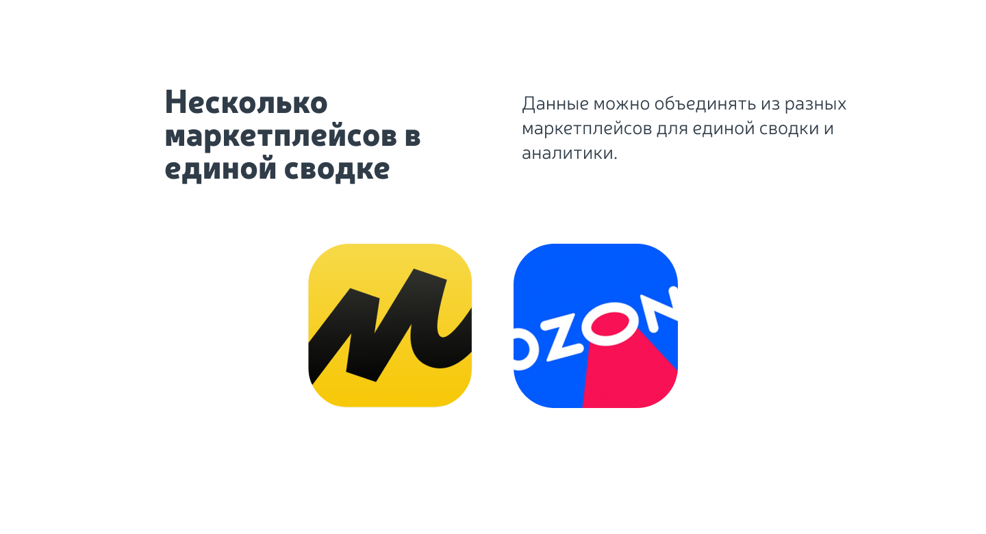 - подключение двух маркетплейсов: Ozon и Яндекс.Маркет