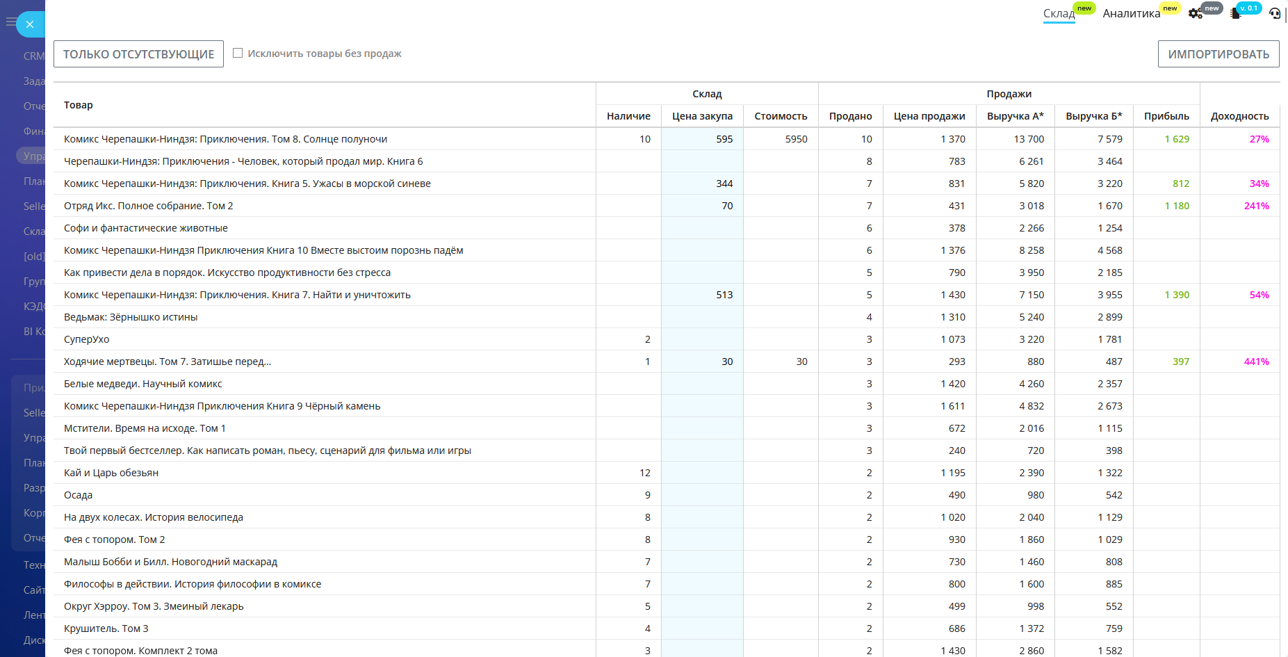 - базовый функционал учета прибыли на основе продаж;
