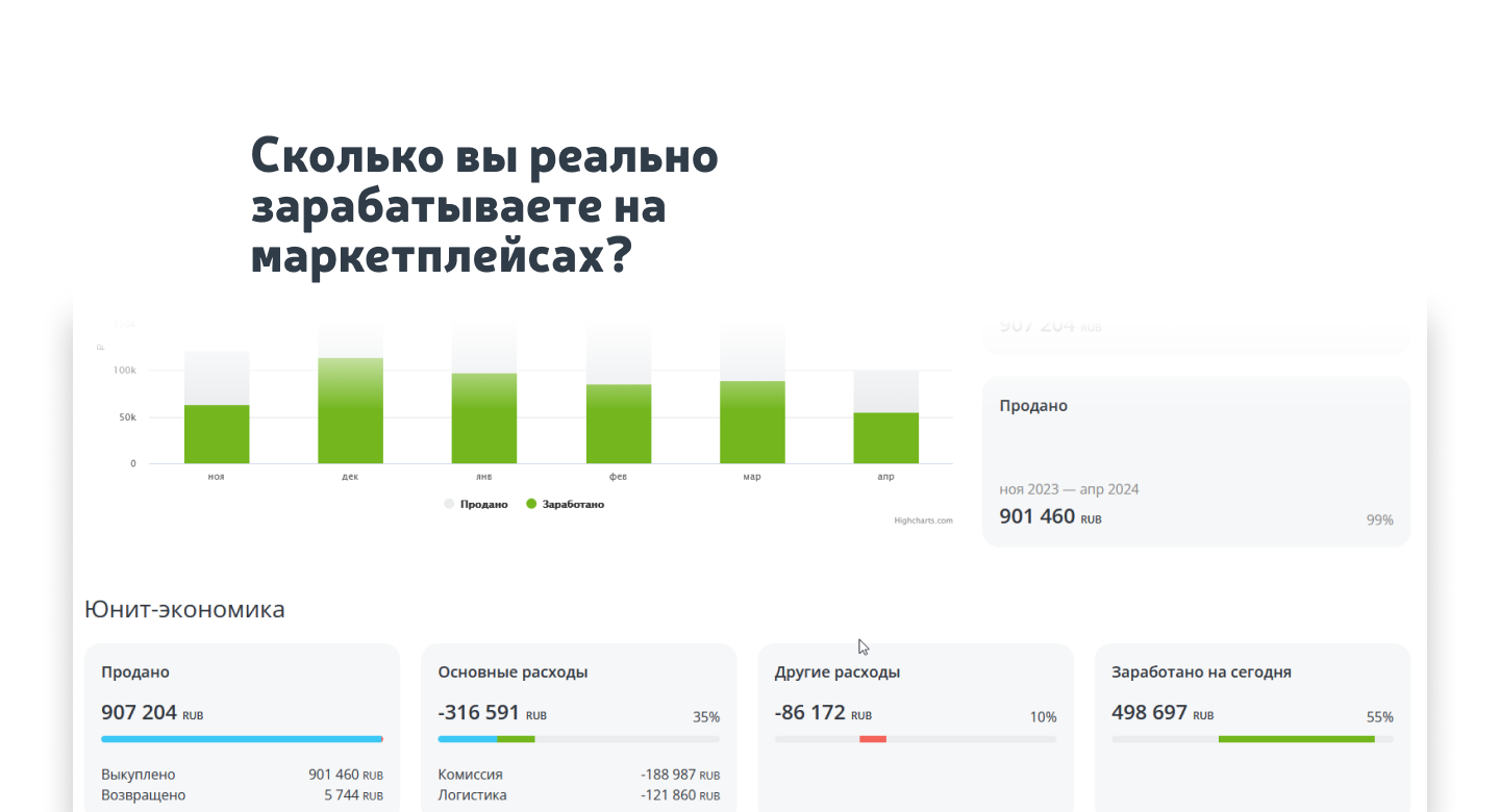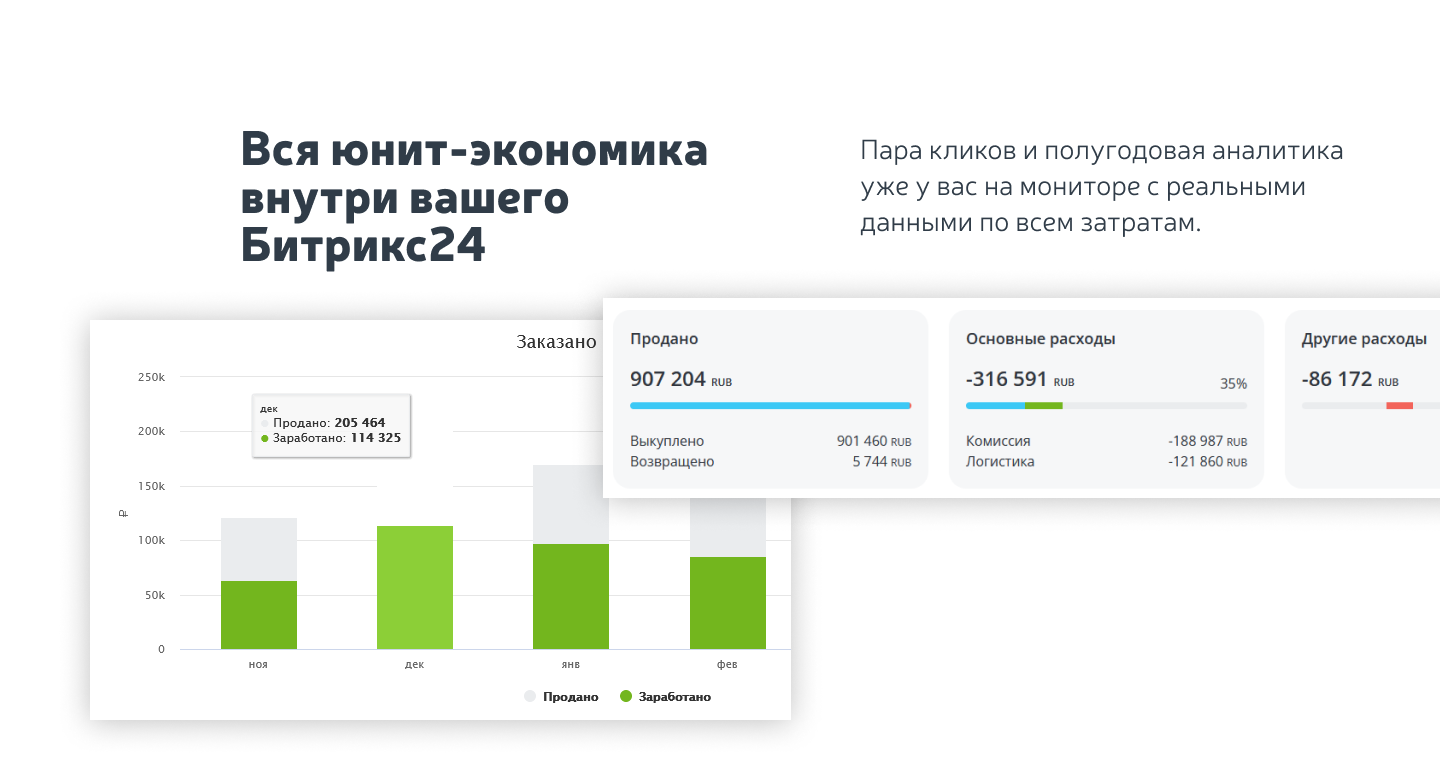- базовый функционал аналитики и юнит-экономики;
