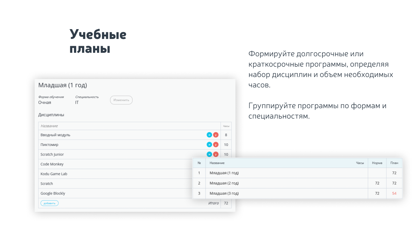 - управление учебными планами;