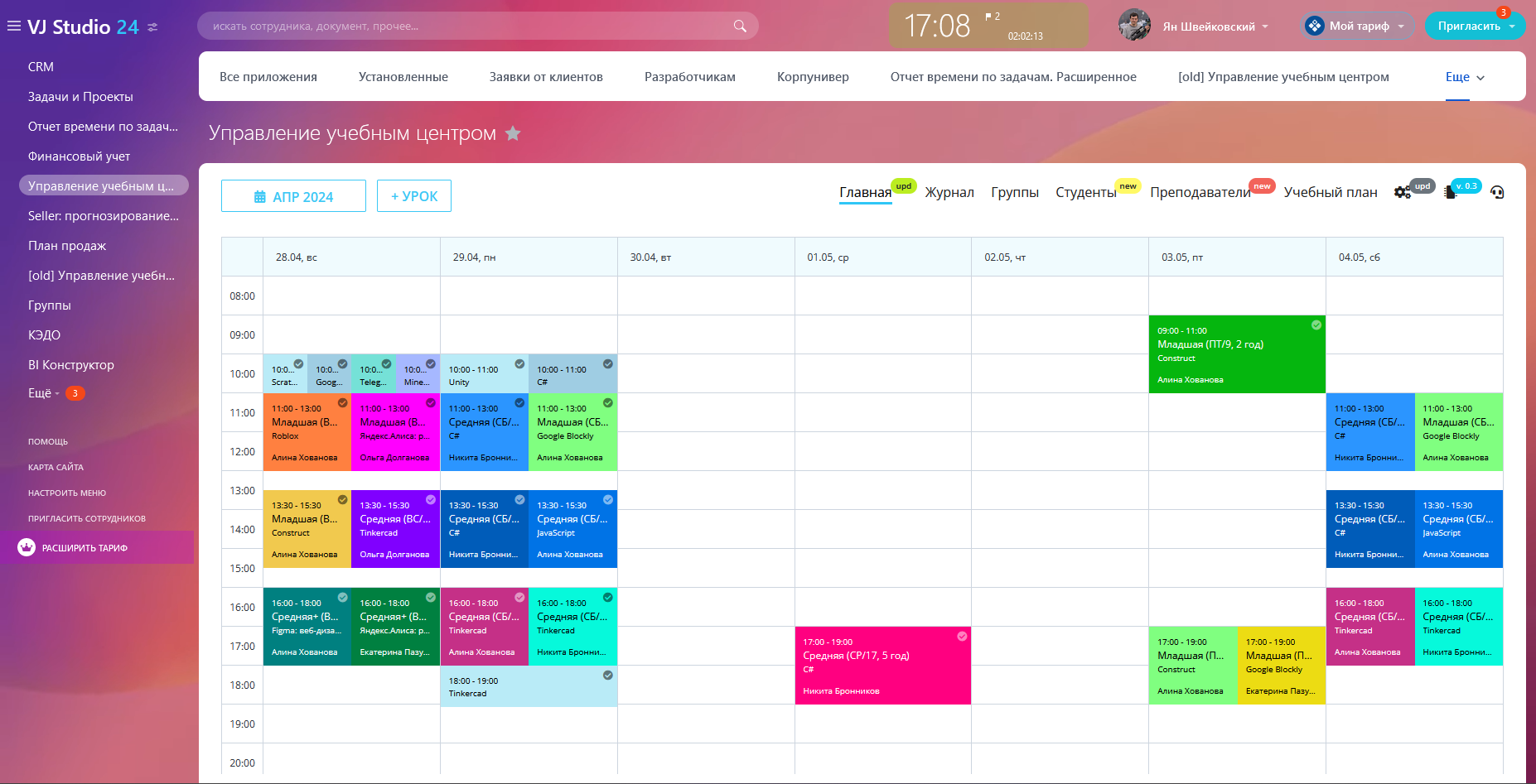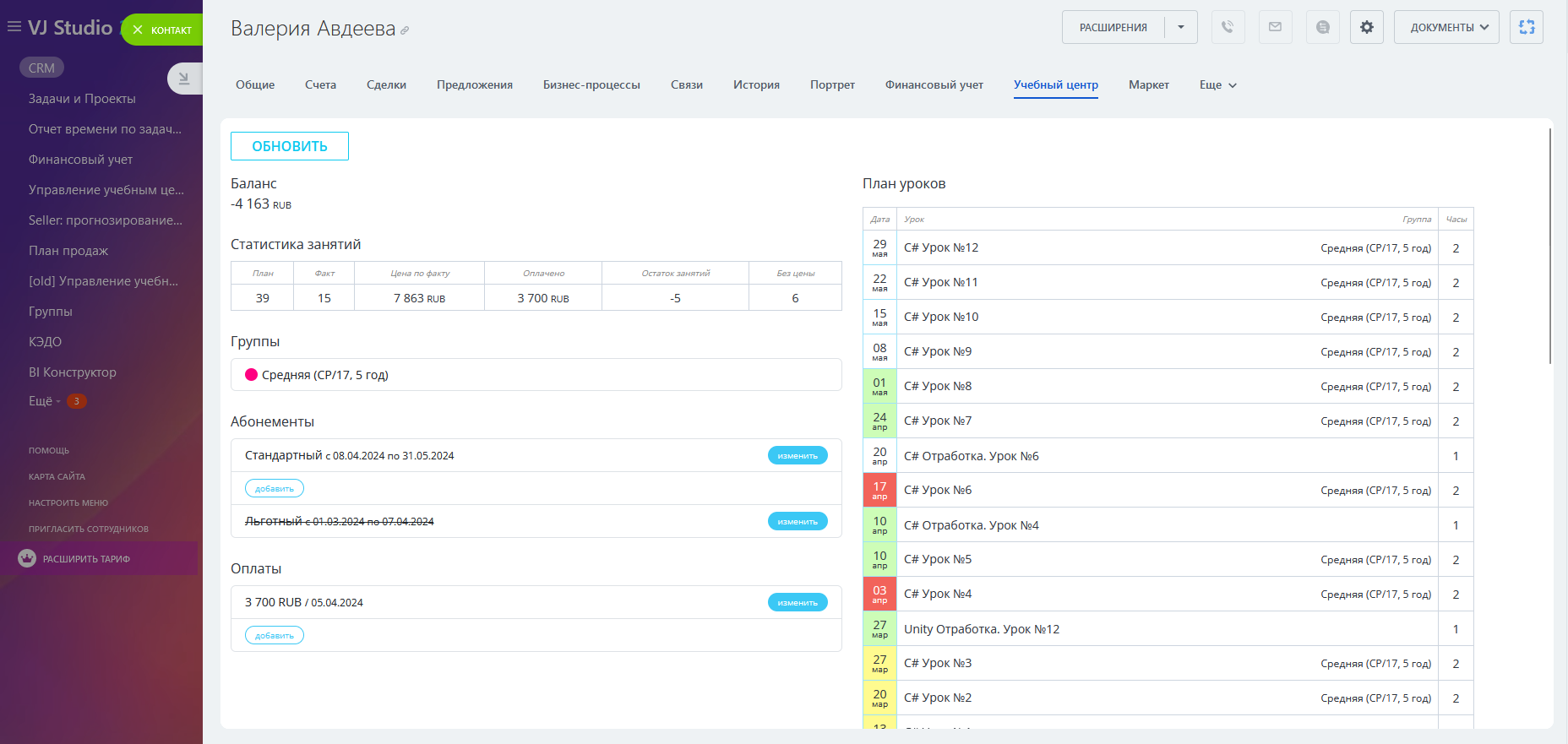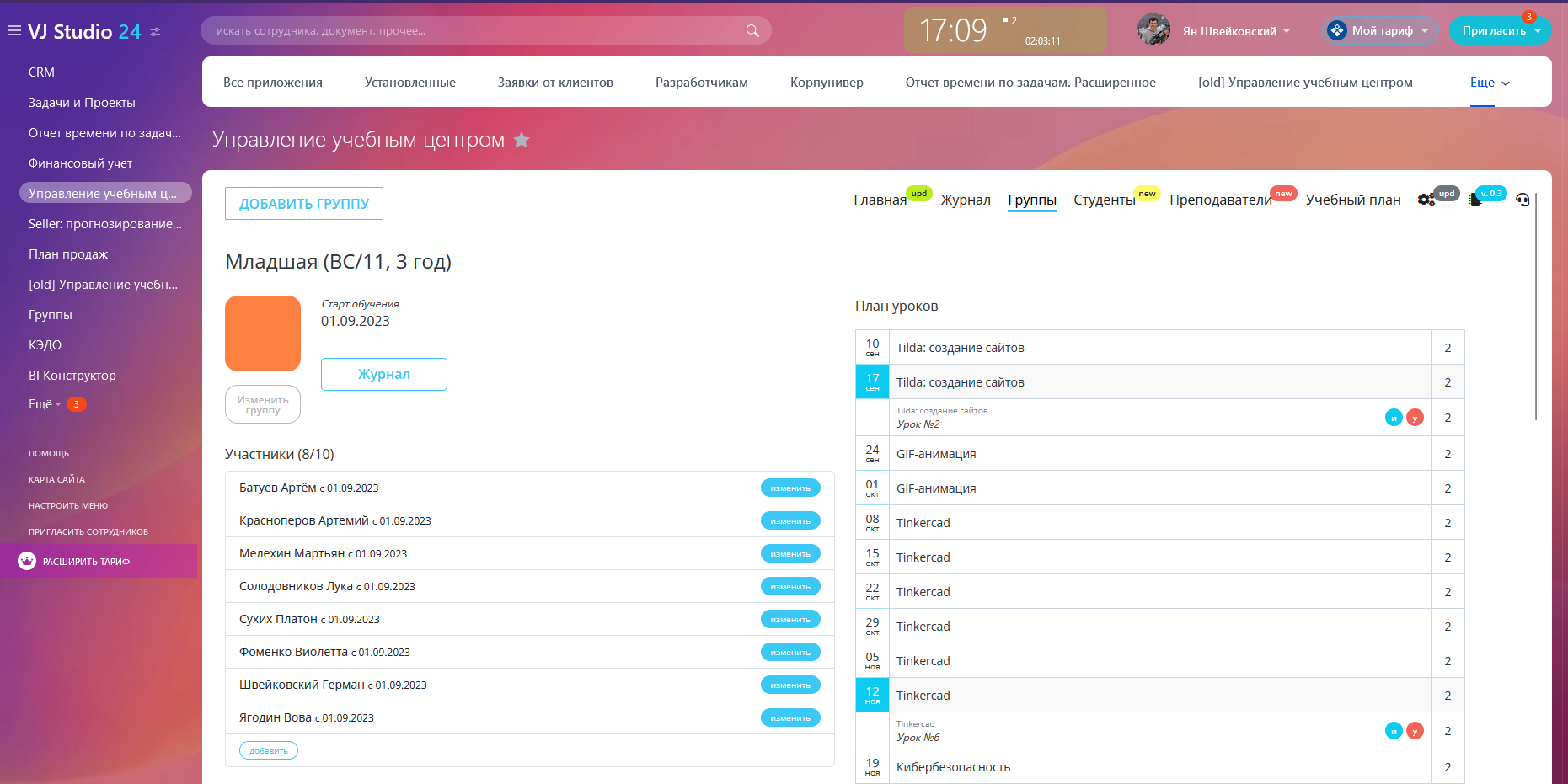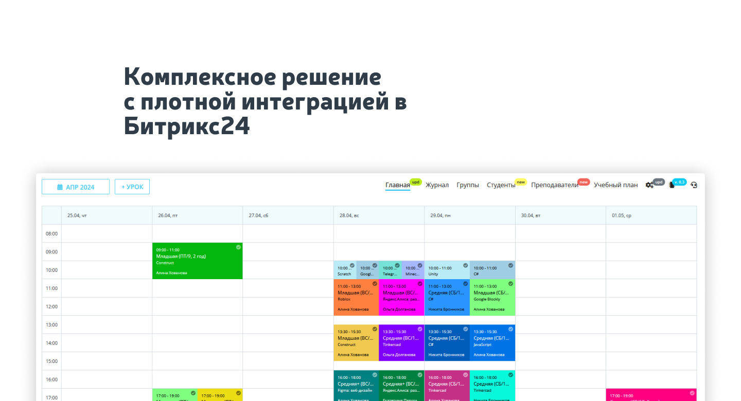- управление группами и учениками (из CRM или пользователи портала);