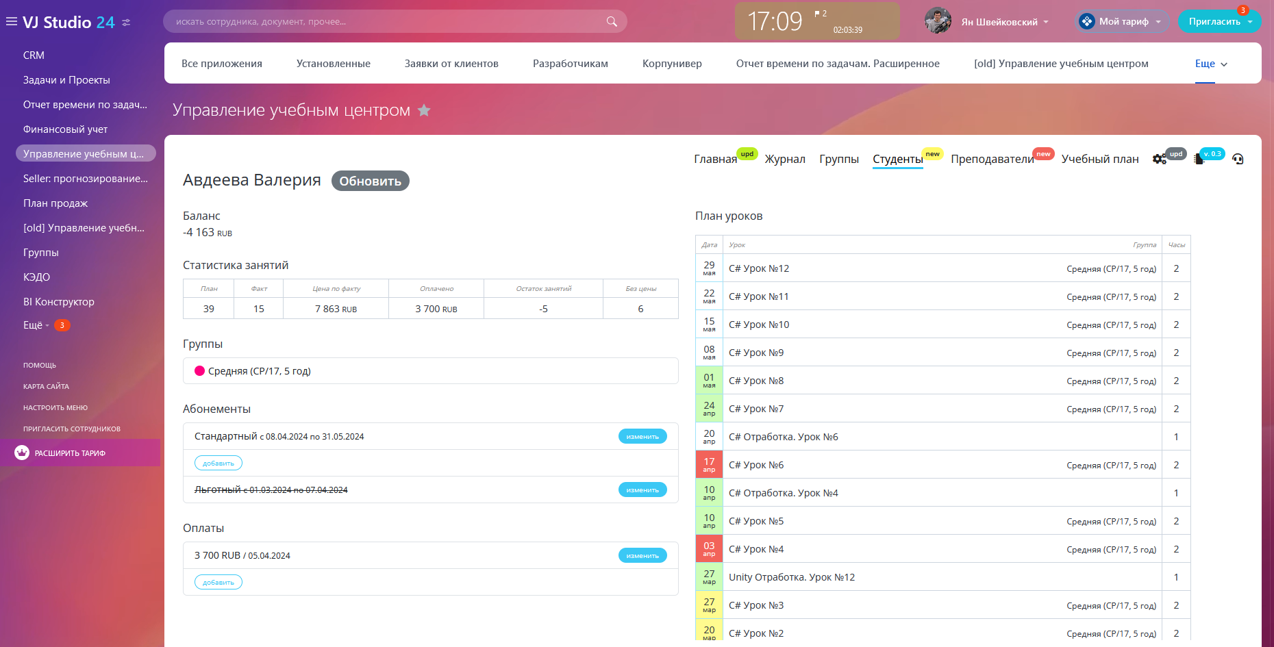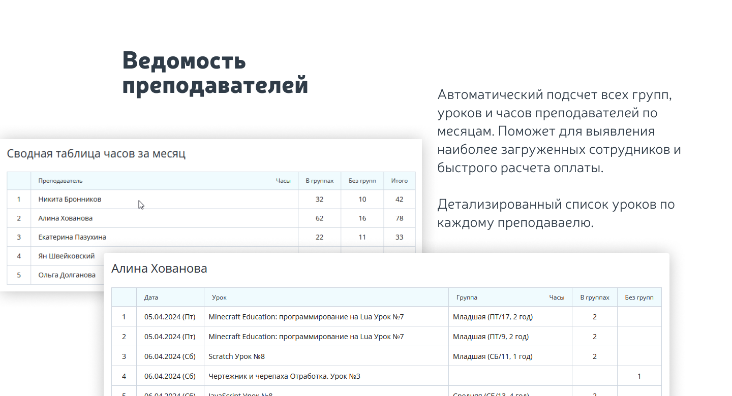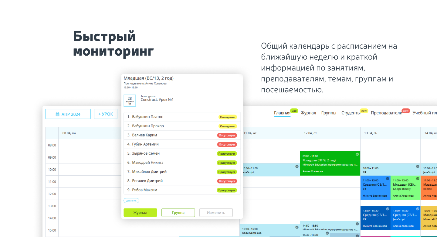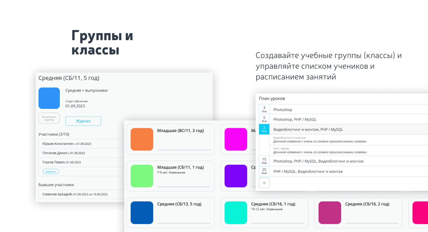 - управление расписанием занятий;