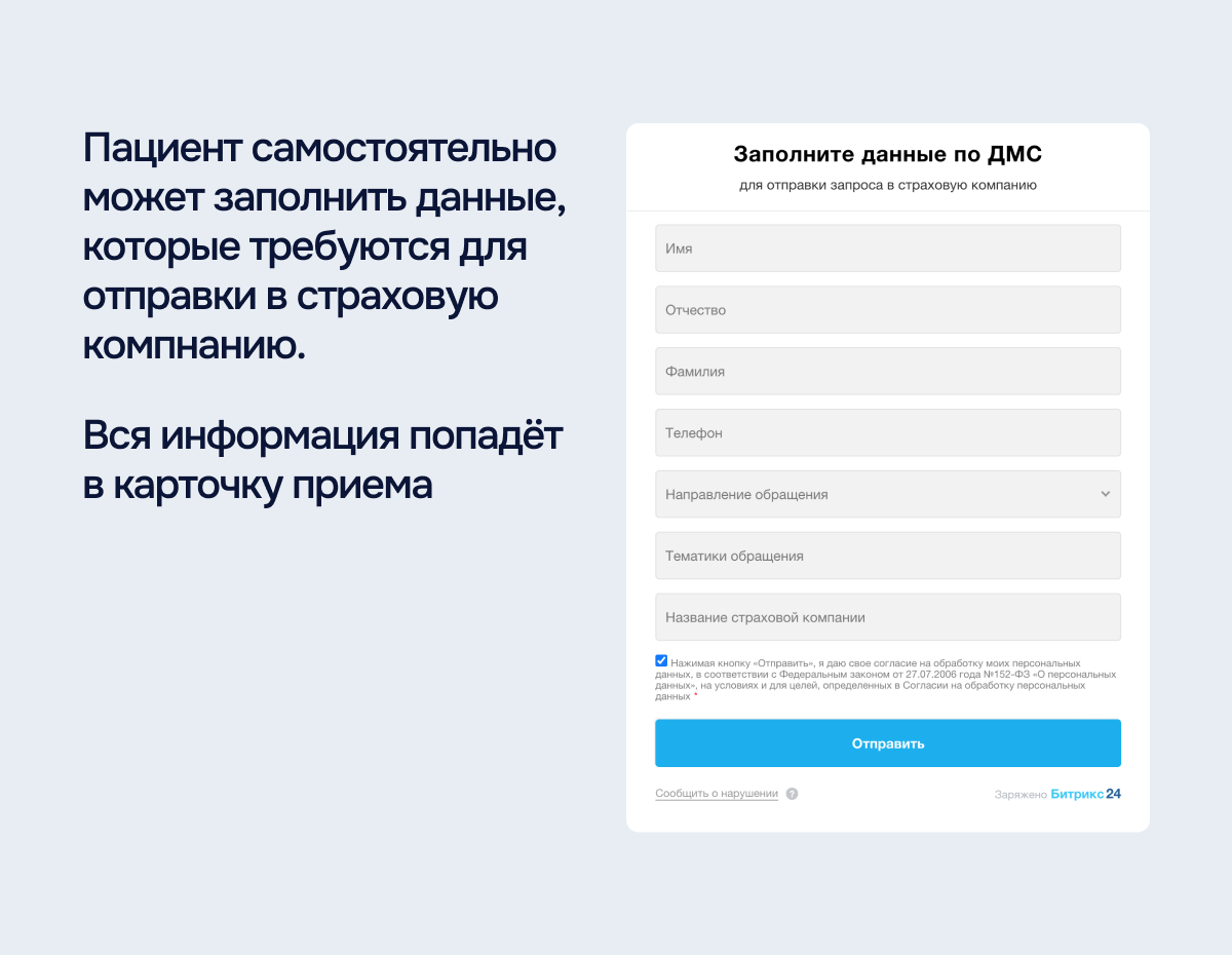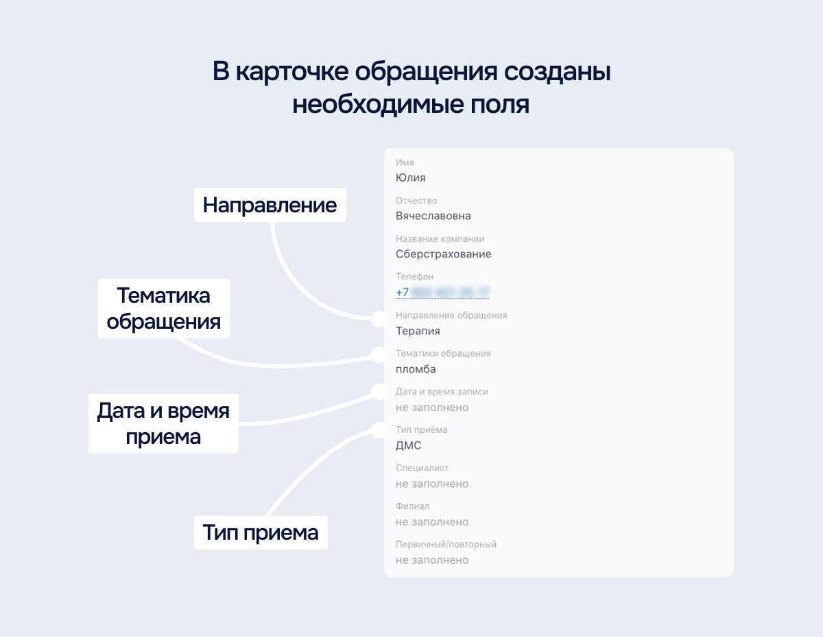 - Телефон в формате 79999999999 - служебное поле необходимое для интеграции с МИС;