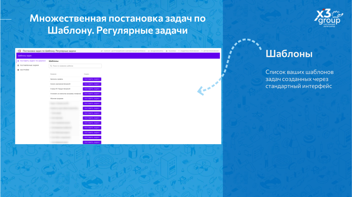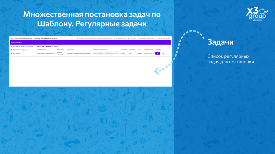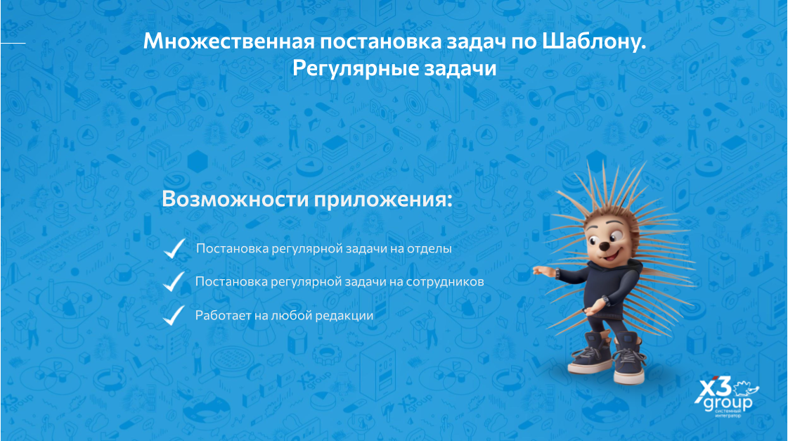 - Дает возможность постановки регулярных задач из шаблона на редакциях где эта функция недоступна