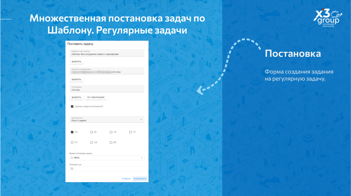 Наше приложение позволяет запускать создание задач по шаблонам автоматически — по расписанию.