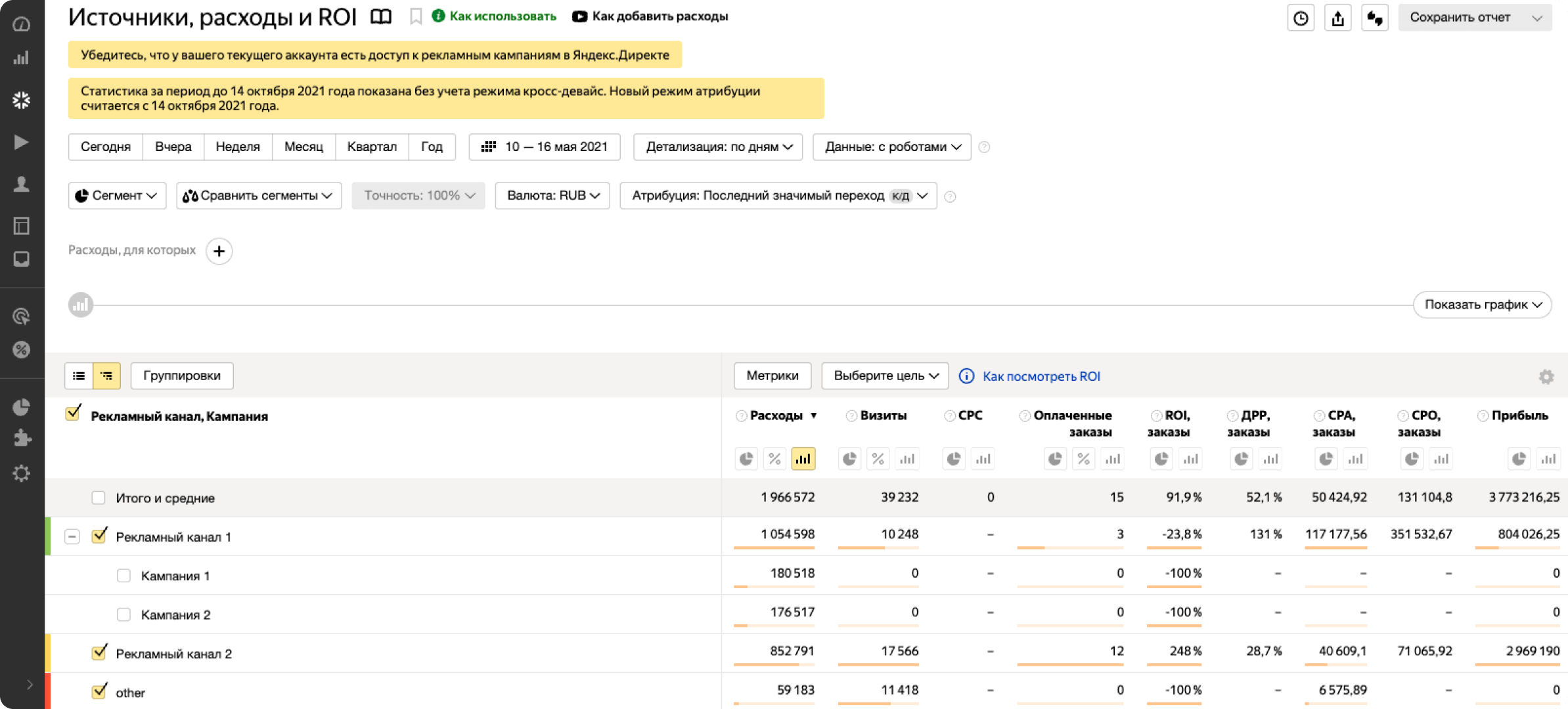 ● Находить прибыльные и убыточные настройки рекламы — с детализацией до UTM-меток.