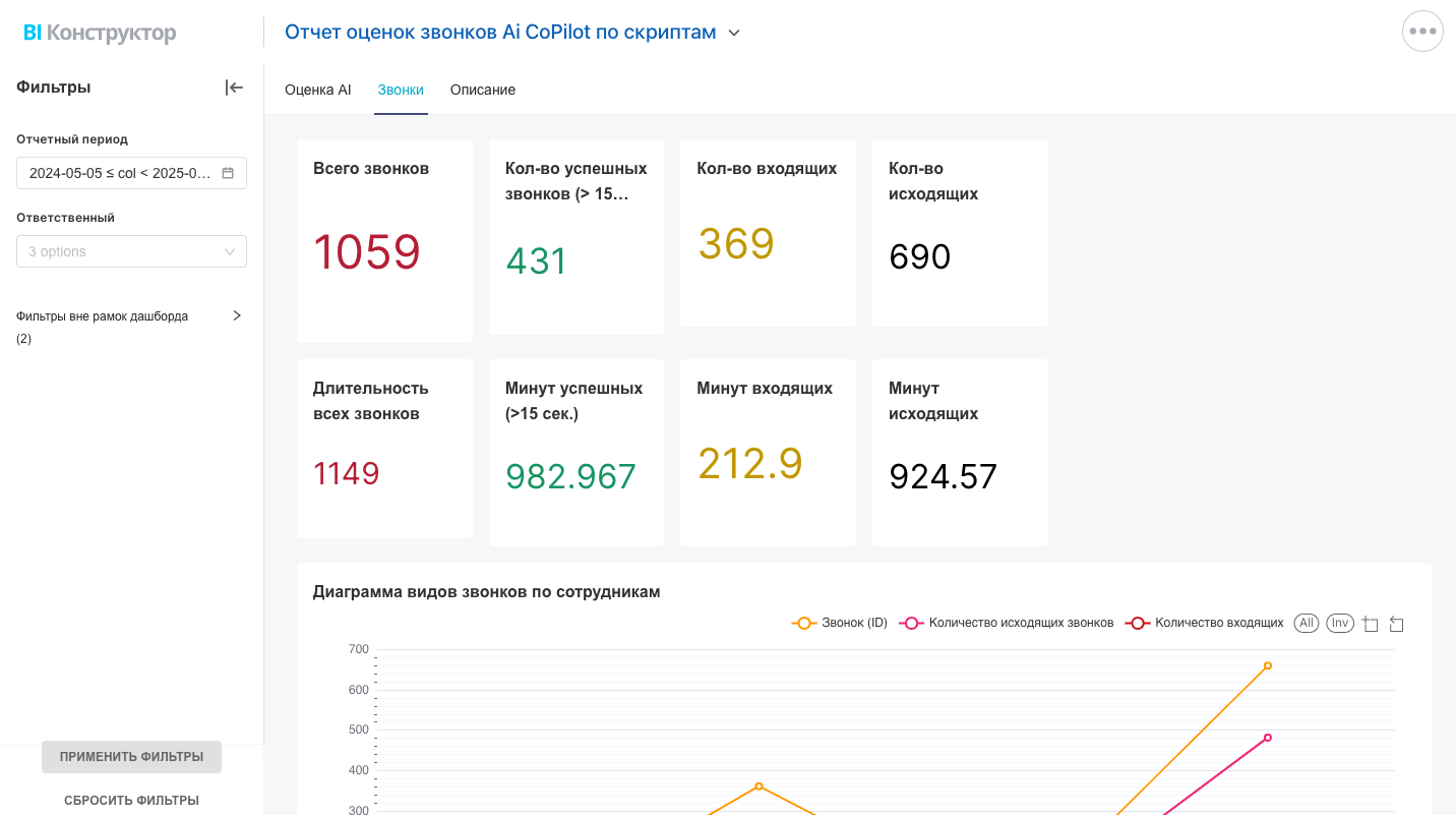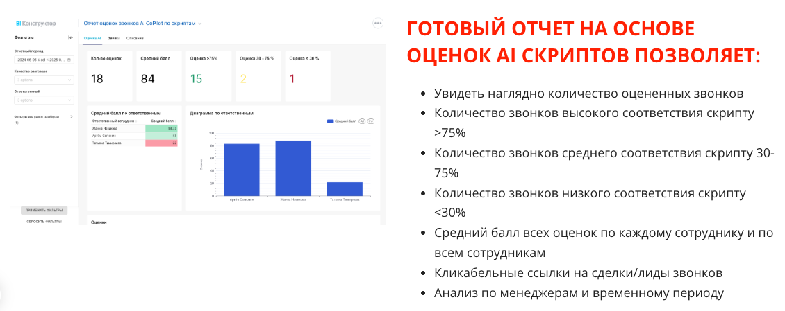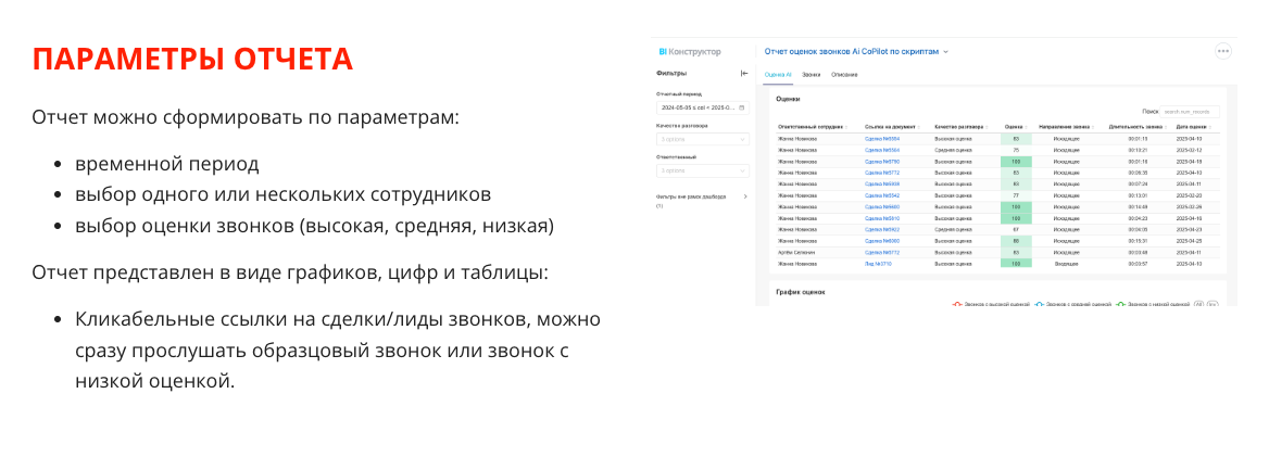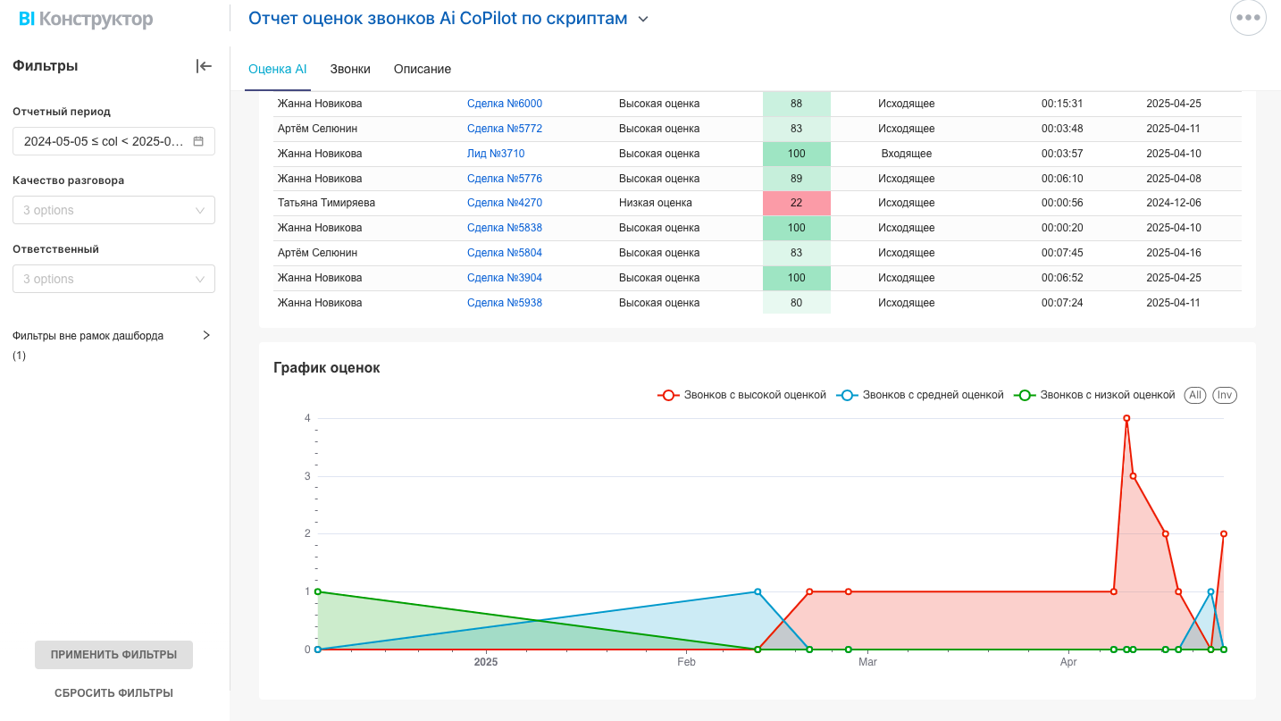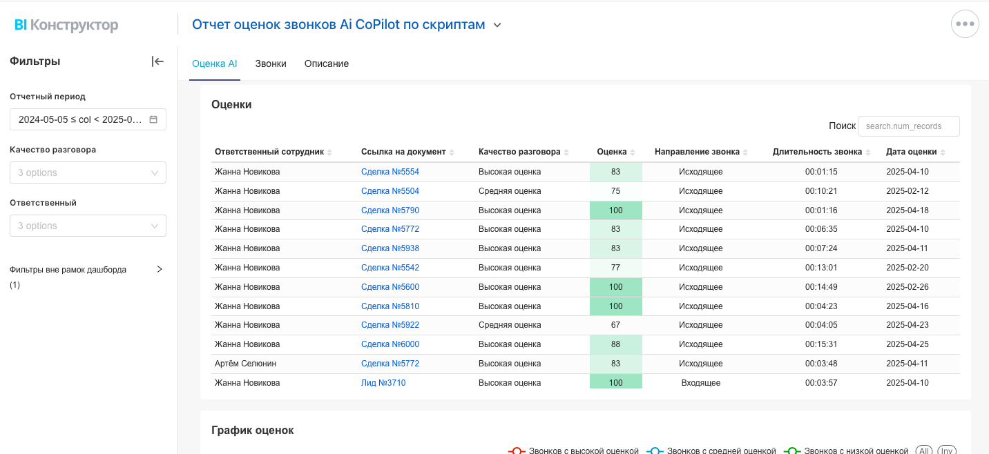 Отчет Анализ оценок скриптов звонков Ai CoPilot + звонки