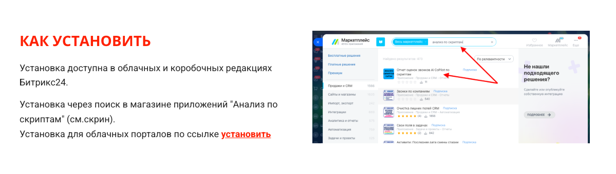 Данное решение включает в себя все последние новинки Битрикс24. Все готово для работы! Составьте простые скрипты и начните работу!