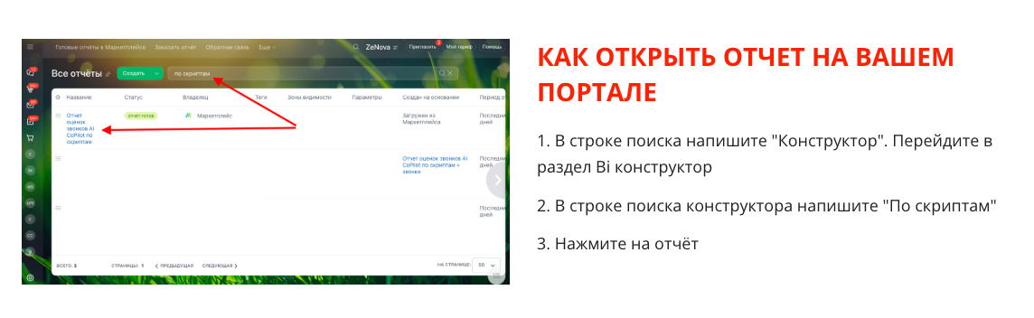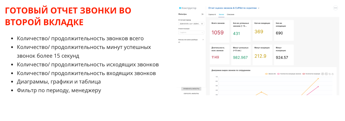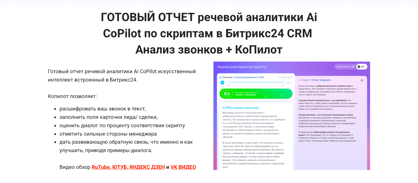 Готовый отчет речевой аналитики Ai CoPilot искусственный интеллект встроенный в Битрикс24.