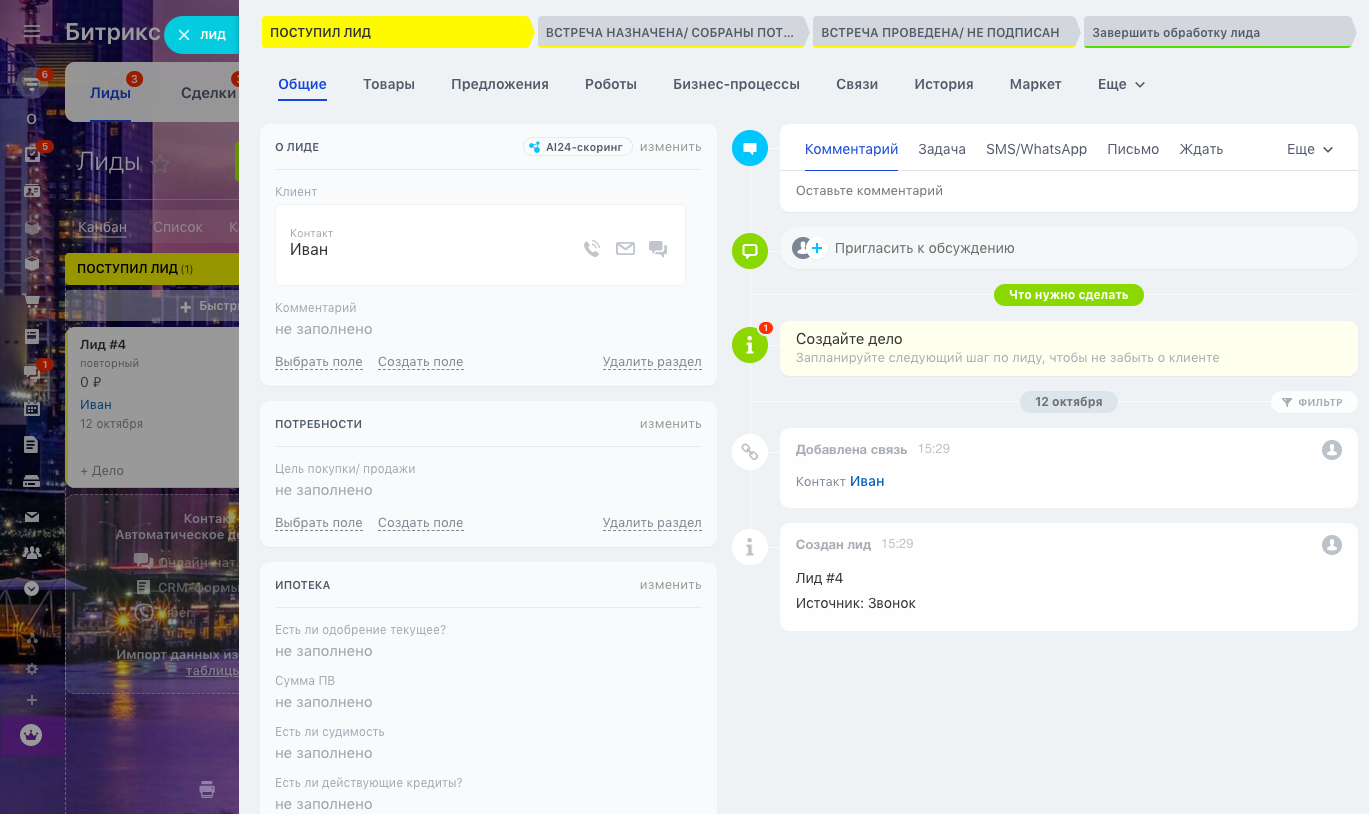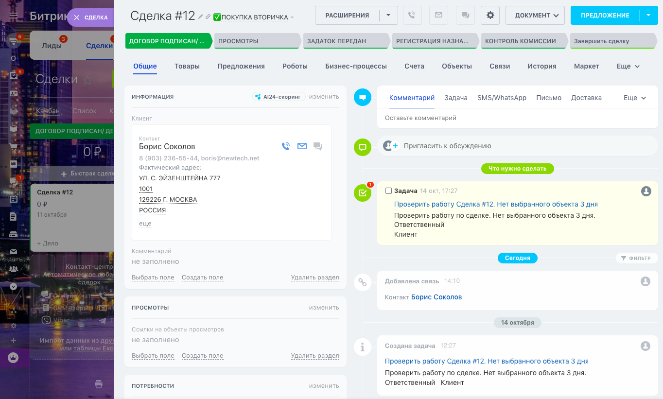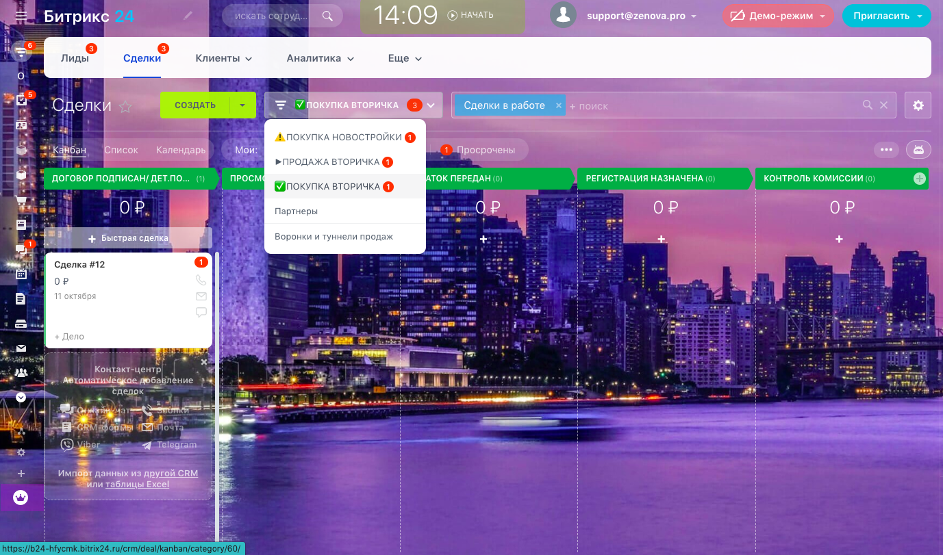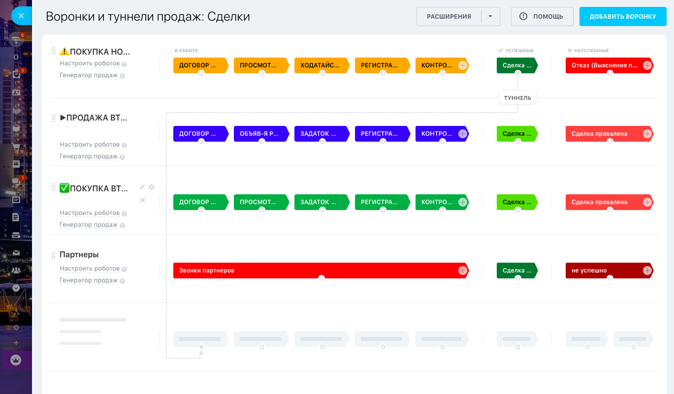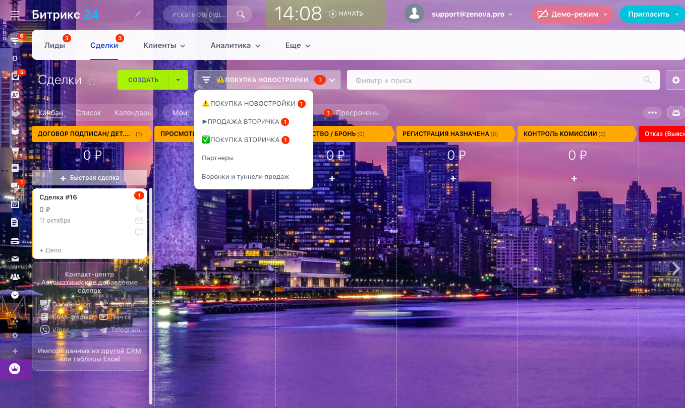 Клиент может одновременно идти по нескольким воронкам такие как: продажа Покупка новостройки и Продажа вторичка.