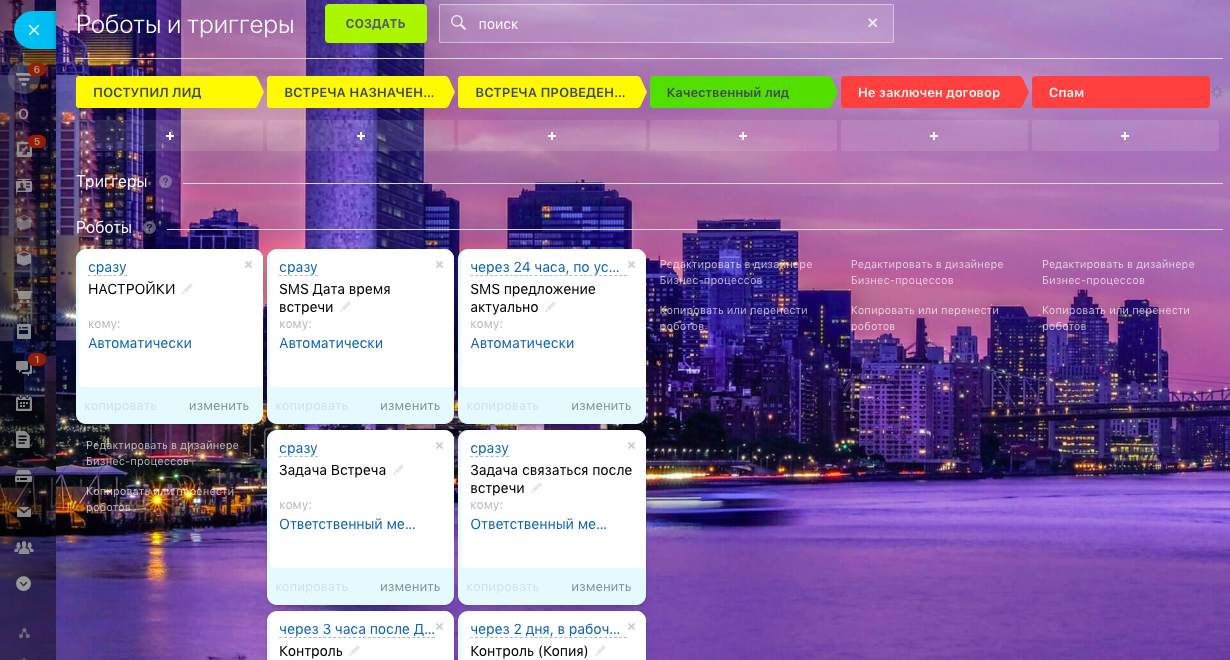 CRM Недвижимость помогает работать как внутри компании, так и с клиентами в автоматическом режиме. Корректно учтены все этапы для правильного расчета конверсии, контроля менеджеров и помощи в работе руководителю. Автоматические вотсап и смс сообщения удерживают клиента и фокус внимания на вашей компании.