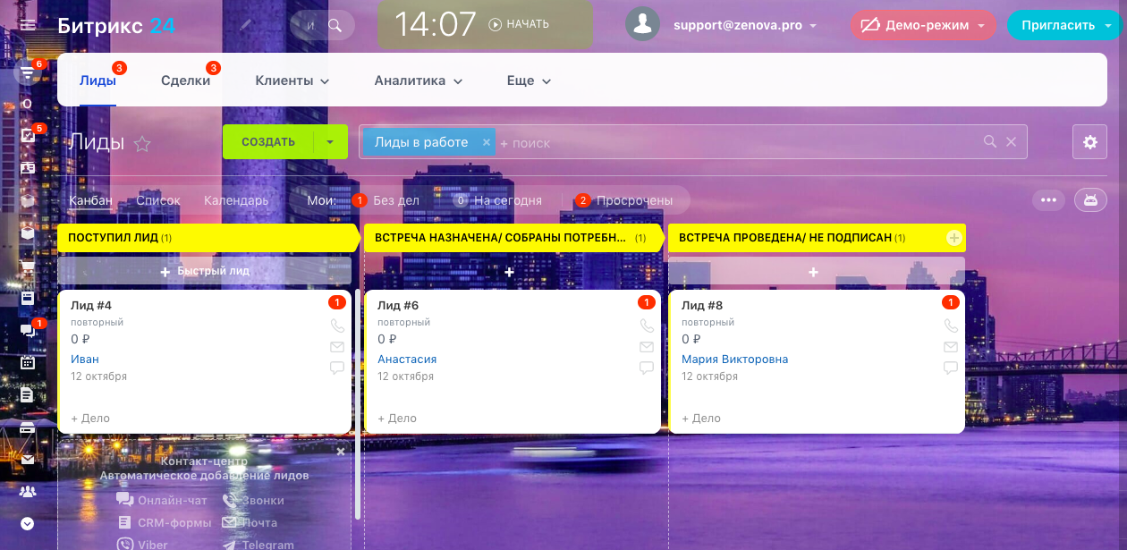 ✓ Система обязательных полей не даст продвинуть лид, сделку, если менеджер их не заполнил - ничего не будет утеряно!