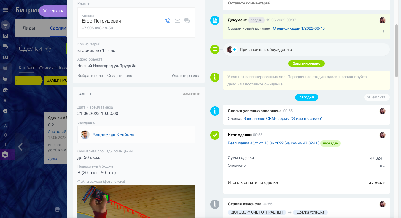 Готовая CRM для натяжных потолков. Продуманы сценарии автоматизации как для менеджеров, так и для клиентов. CRM для натяжных потолков отвечает всем современным требованиям компании.