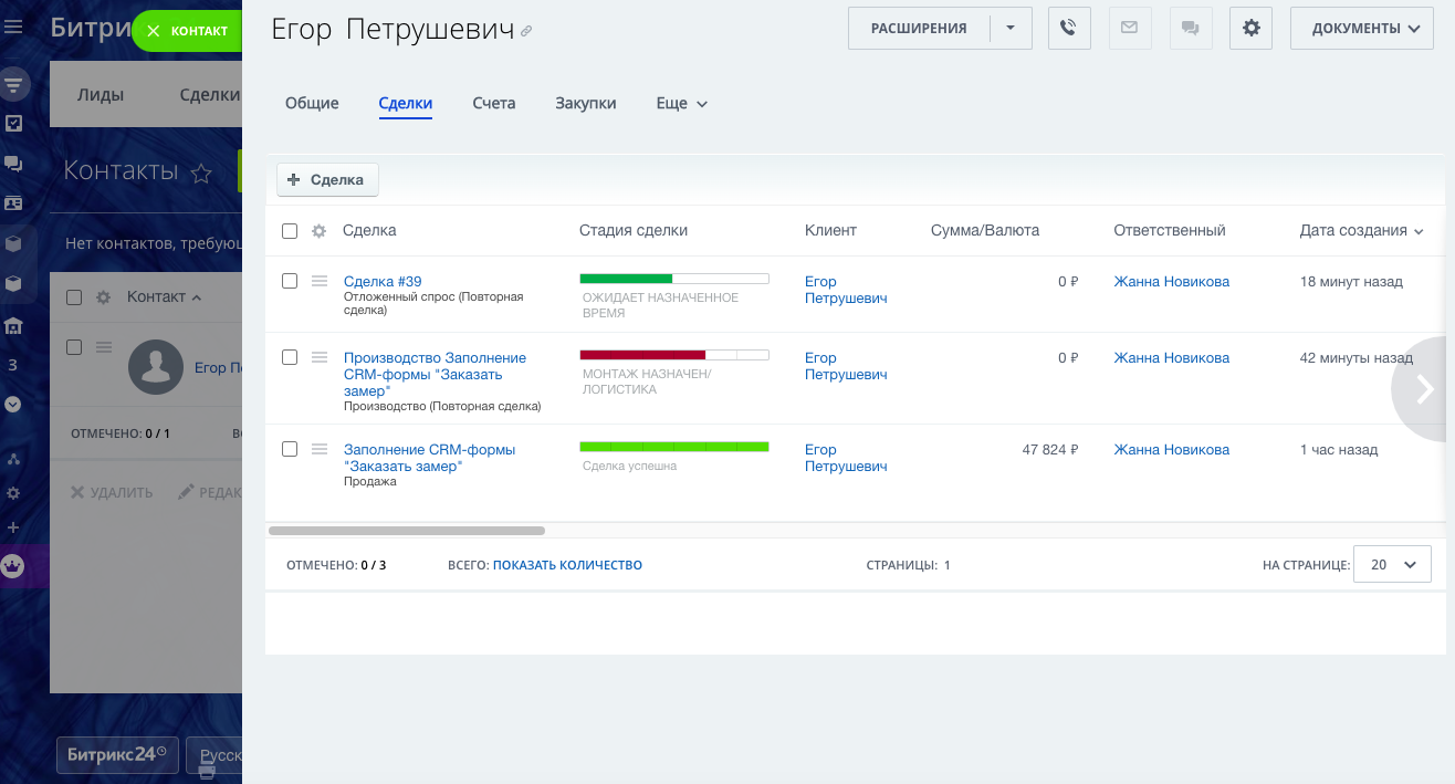 - Автоматическое добавление клиента через CRM формы контактных данных